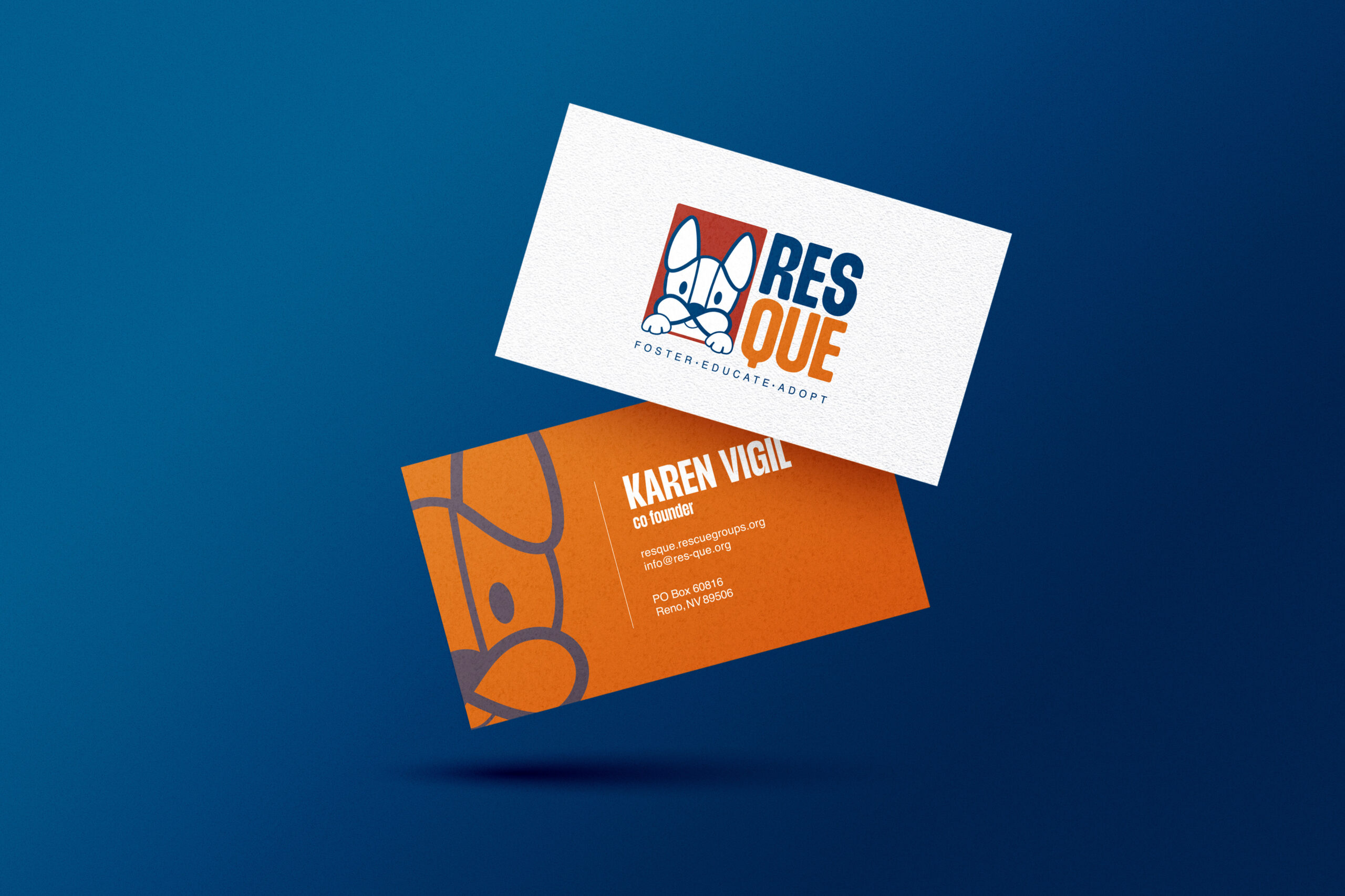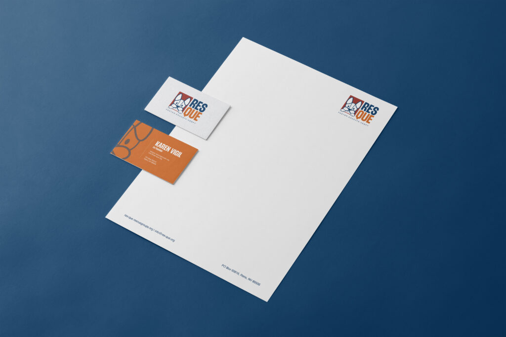 ResQue is a non-profit organization serving Northern Nevada and California, dedicated to rescuing dogs from overcrowded shelters where they are at risk of euthanasia. For this project, I worked to develop a stronger brand identity concept by re-designing their logo and stationary set.